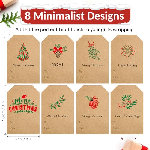 8 Minimalist Natural Designs: Elevate your gift-giving with our set of 120 Christmas Kraft Gift Tags, featuring 8 unique and minimalist natural designs that add a touch of elegance to your presents. Each set is thoughtfully packaged with exquisite envelopes, making them ready for gifting or storage.